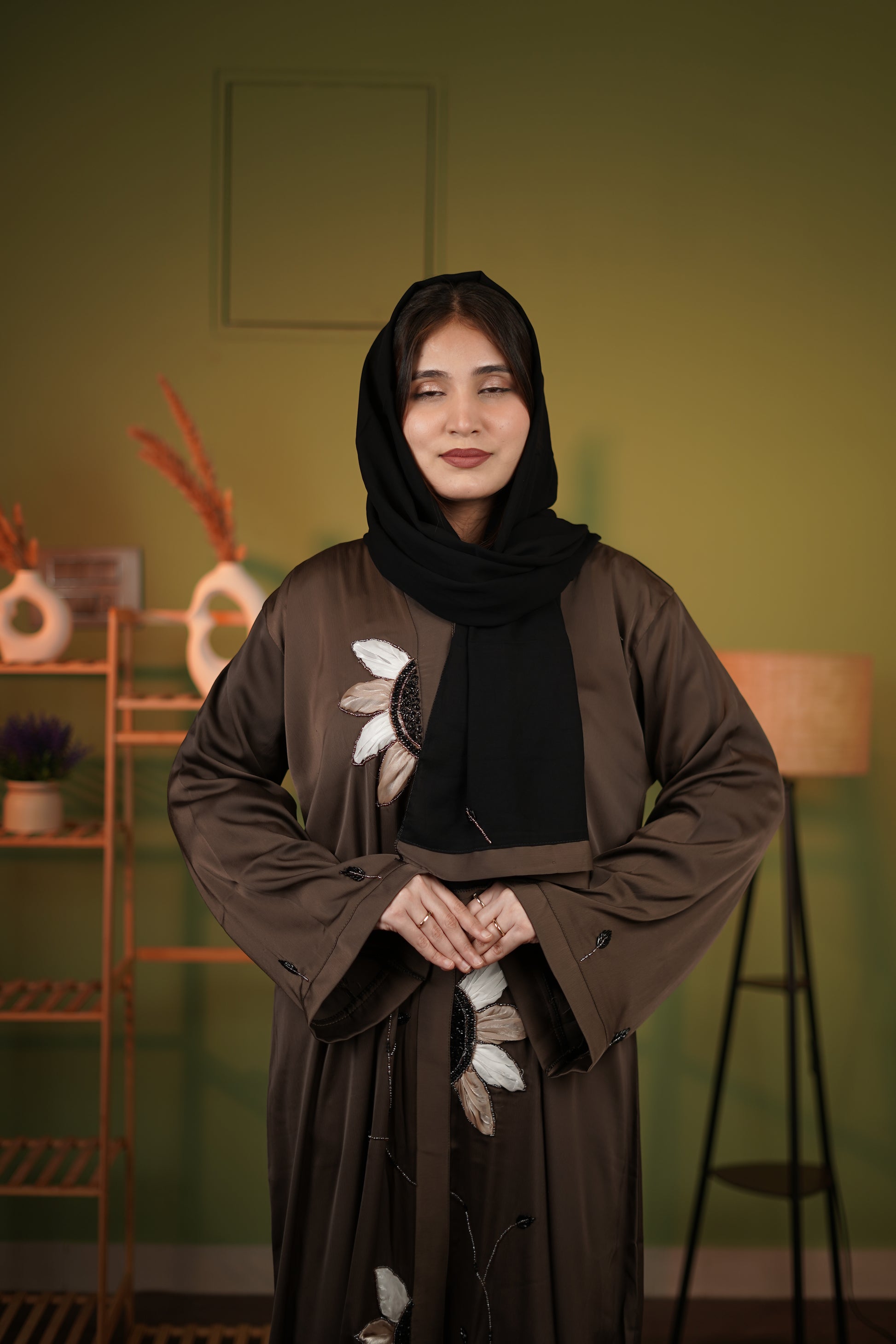 Brown sunflower abaya