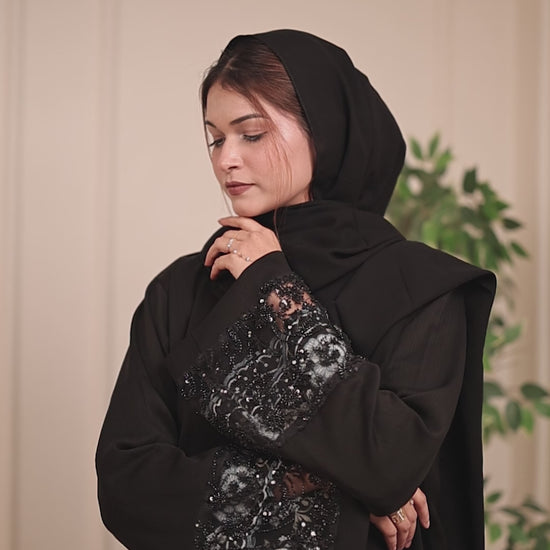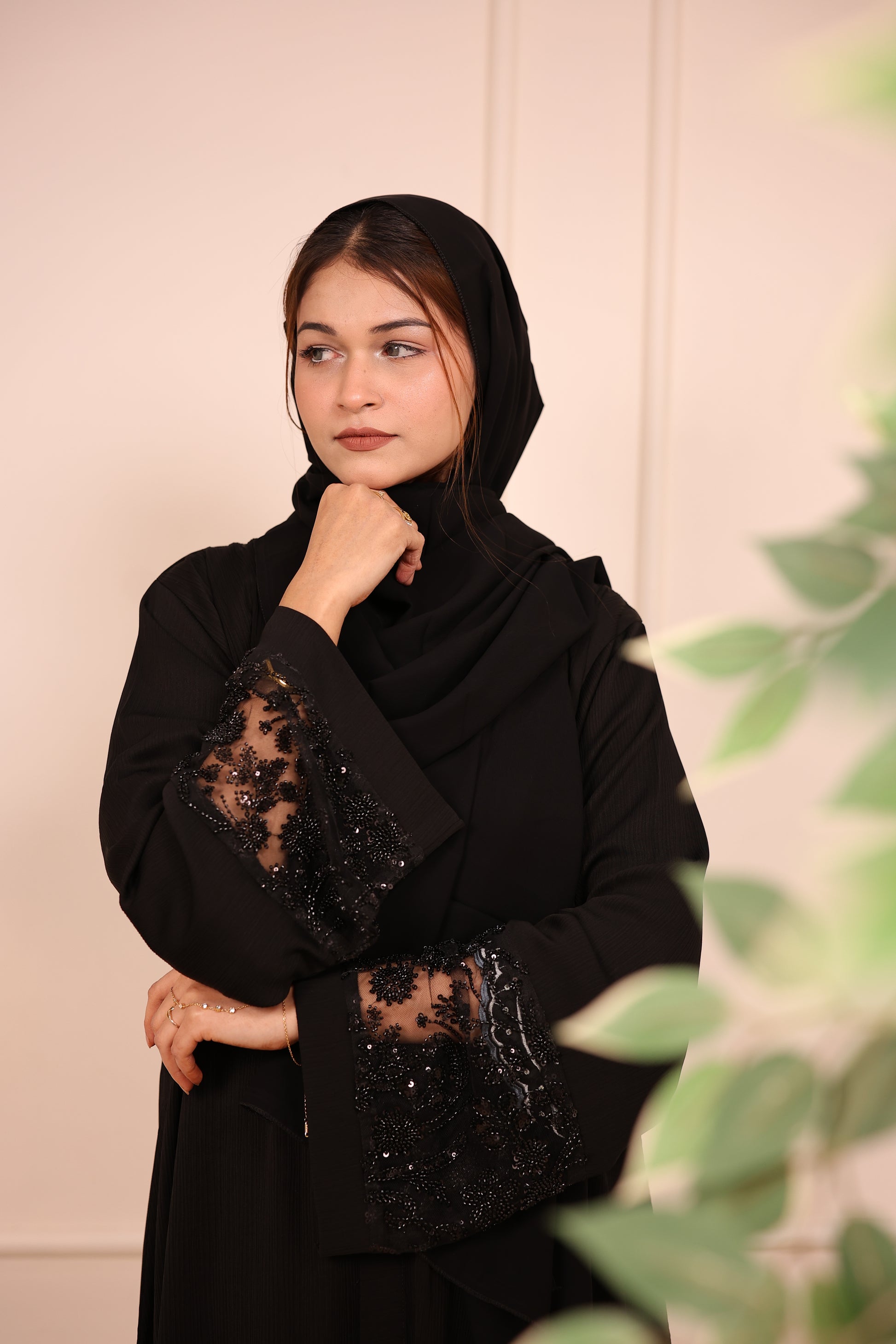 This abaya fabric is zoom with hand work lace in sleeves light weight comfortable to wear suitable for partywear and daily wear