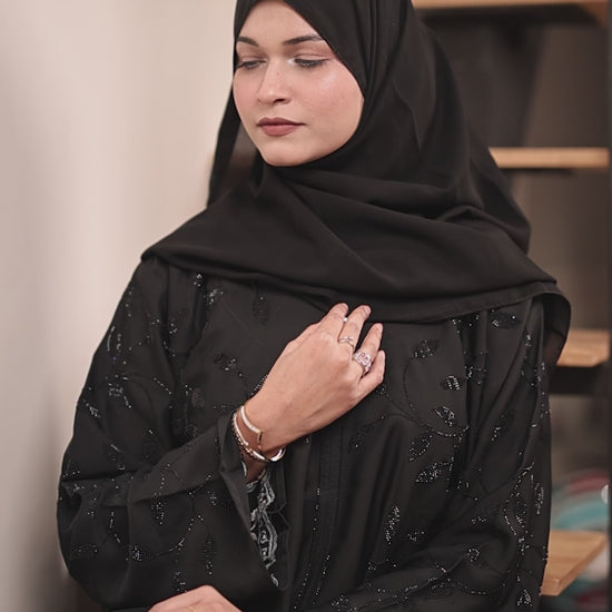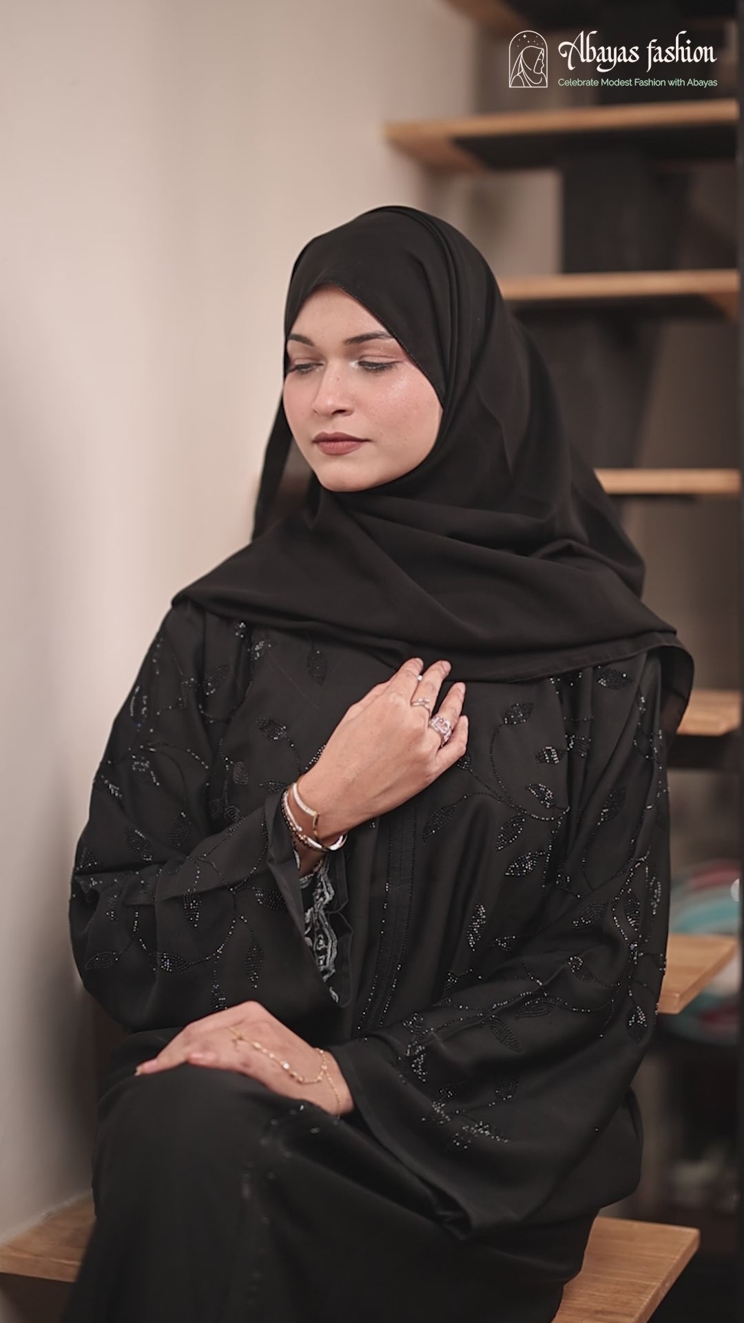This abaya abaya fabric is nida with diamond work on front and sleeves very comfortable to wear light weight suitable for wedding ,partywear, daily, etc